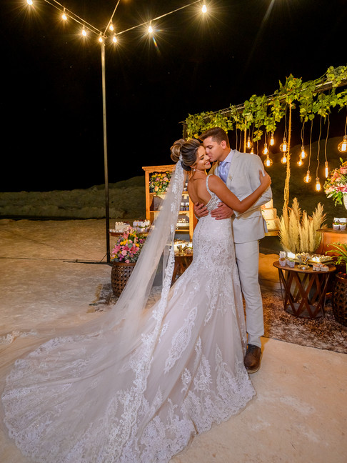 O casal estreou as Dunas de Areia de Brasília com um Mini Wedding para 80 pessoas. Foram 20 dias para replanejar tudo, reduzir a lista de 200 convidados que havia sido feita antes do Covid-19 se alastrar, organizar a logística e estrutura para casar nas Dunas. De acordo com a noiva, as Dunas só recebeu pequenas cerimônias até agora, portanto ela estreou o primeiro casamento com festa por lá. "Adaptamos tudo o que pudemos de forma sobrenatural: levamos banheiros, conseguimos estrutura para o buffet e tudo o que precisou, então, mais uma vez contrariamos as expectativas", disse ela.