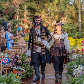 Quem também aderiu aos trajes de fantasia foram os fornecedores. Todos entraram no clima e fizeram o casal se sentirem abraçados e compreendidos. Afinal, o casamento é sobre isso! Abraçar o sonho do casal.